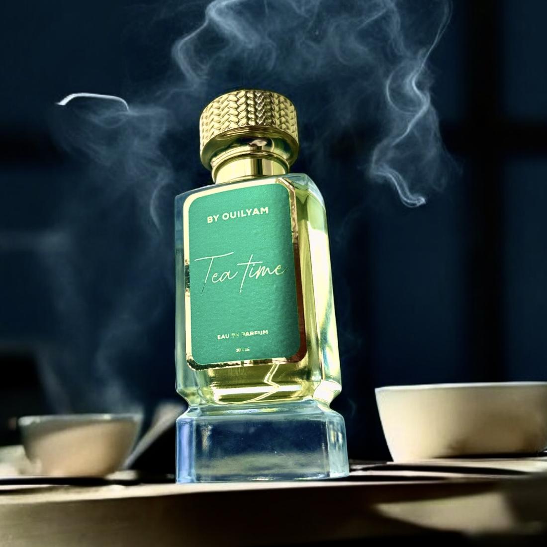 Tea Time, c’est ce moment de partage, cette tradition intemporelle où l’Orient et l’Occident se rejoignent autour d’une tasse de thé. En tête, la fraîcheur du thé blanc et de la menthe poivrée rappelle autant le rituel marocain que l’élégance d’un afternoon tea britannique. En cœur, le musc blanc et les épices boisées réchauffent la composition, lui donnant une profondeur sophistiquée. Enfin, la bergamote et les notes citronnées en fond rappellent la lumière des jardins où l’on se retrouve, savourant chaque instant.